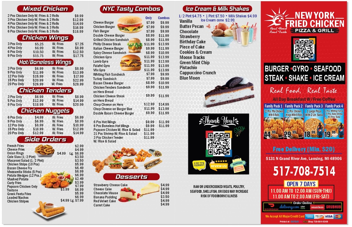 If you're looking for an exciting culinary experience in Lansing, Michigan, look no further than New York Fried Chicken Pizza and Grill, conveniently located at 5131 N Grand River Ave. This vibrant eatery is creating quite the buzz among food enthusiasts, and for good reason. With a menu that seamlessly blends American comfort food with Middle Eastern favorites, every visit feels like a delightful adventure.